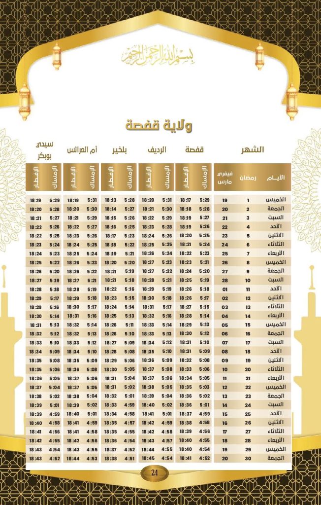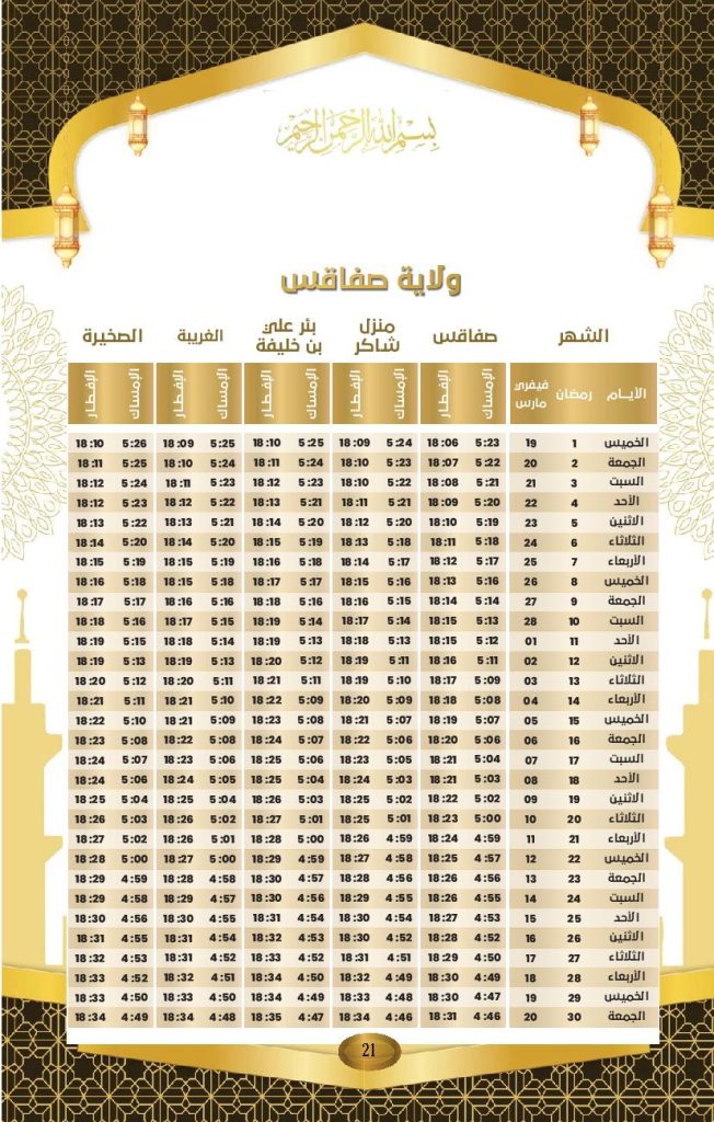 مواعيد الافطار و السحور في ولاية صفاقس: