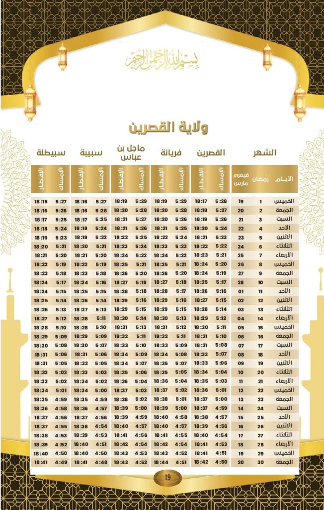 مواعيد الافطار و السحور في ولاية القصرين: