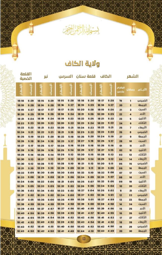 مواعيد الافطار و السحور في ولاية الكاف: