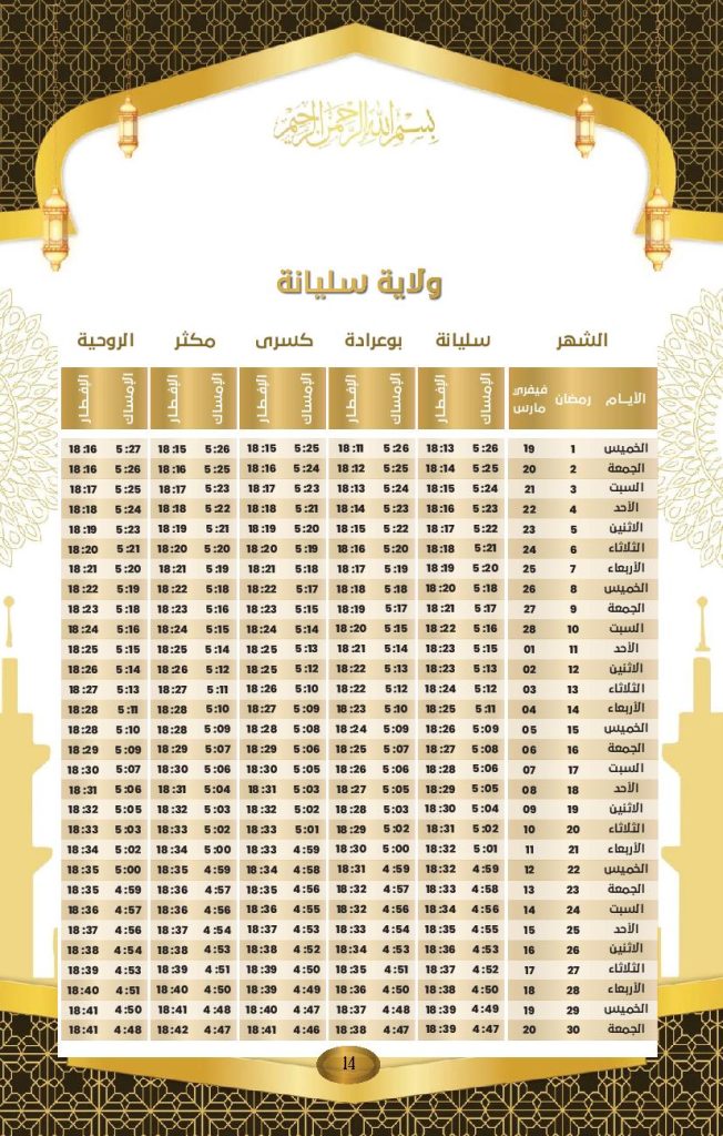 مواعيد الافطار و السحور في ولاية سليانة: