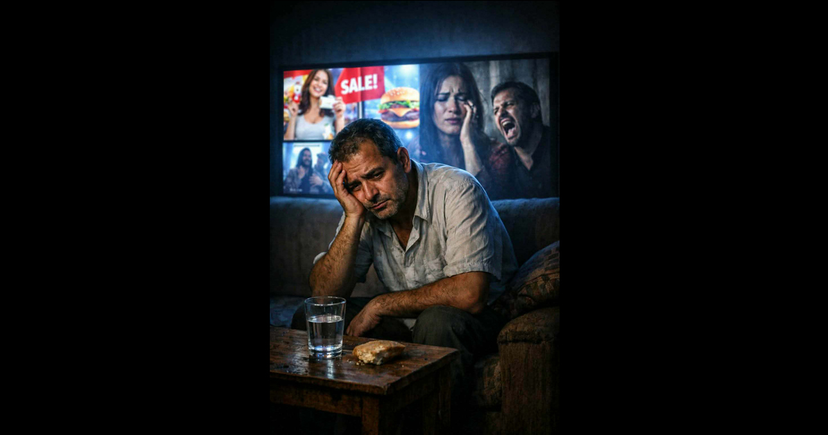 كأنّ الشاشة لم تعد نافذةً للراحة، بل سوقًا صاخبًا يطارده بعروضٍ لا تعنيه، ويذكّره بما لا يملك.وحين تنتهي الفواصل الثقيلة، تبدأ دراما حزينة، مثقلة بالصراخ والدموع والانكسارات.
