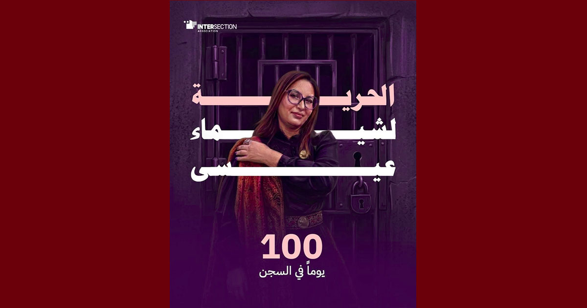 يمثّل يوم 9 مارس 2026، مرور 100 يوم على إيداع الناشطة الحقوقية والسياسية شيماء عيسى السجن، على خلفية الحكم الصادر ضدها في ما يُعرف بقضية “التآمر على أمن الدولة”. وكانت شيماء عيسى قد أُوقفت بتاريخ 29 نوفمبر 2025 من وسط مسيرة سلمية في العاصمة تونس، إثر صدور حكم استئنافي يقضي بسجنها لمدة عشرين سنة مع النفاذ العاجل، إضافة إلى خطية مالية قدرها 50 ألف دينار تونسي، ومصادرة ممتلكاتها.