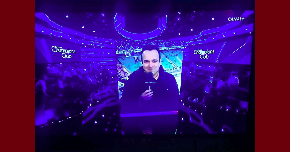 بمناسبة ليلة رابطة الأبطال، تم تزيين استوديو كانال-Canal بصورة الصحفي مراد الزغيدي.
