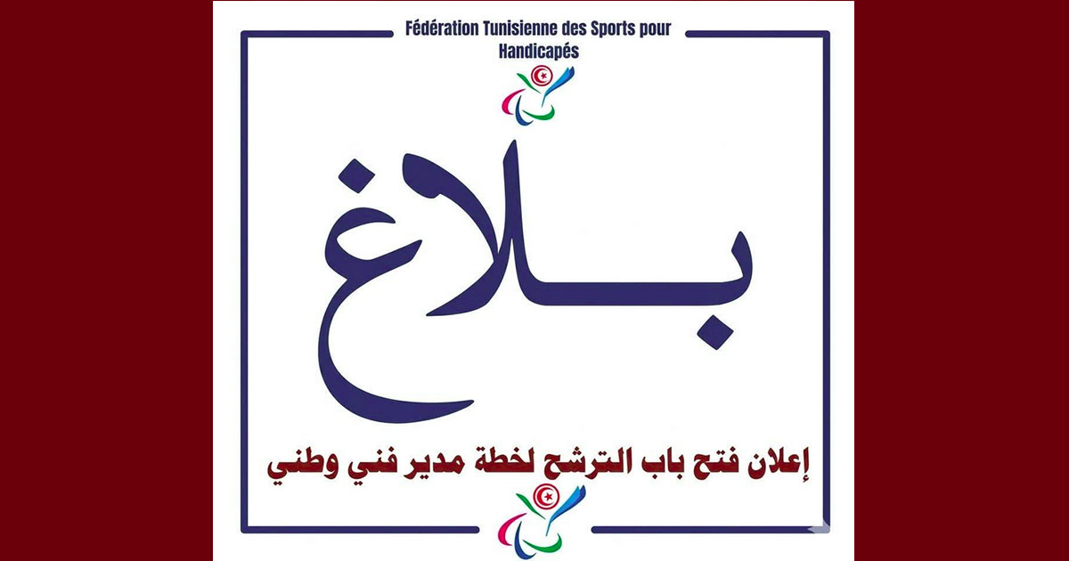 تُعلم الجامعة التونسية لرياضة المعوقين العموم عن فتح باب الترشح لسدّ الشغور الحاصل في خطة مدير فني وطني، وذلك ابتداءً من تاريخ صدور هذا الإعلان إلى غاية يوم 20 أفريل 2026.