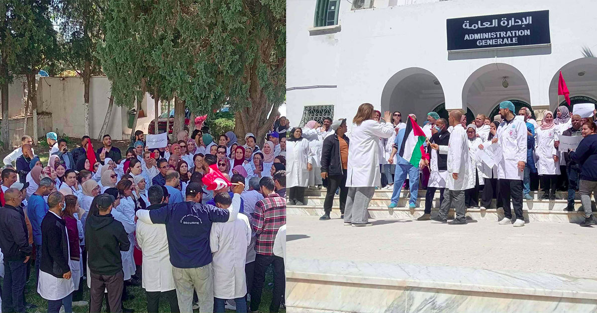 و ذلك صباح اليوم الأربعاء 8 أفريل 2026 بالتزامن مع مستشفيات جهات بنزرت و القيروان و مدنين من أجل الانصاف و الكرامة بين الأعوان .