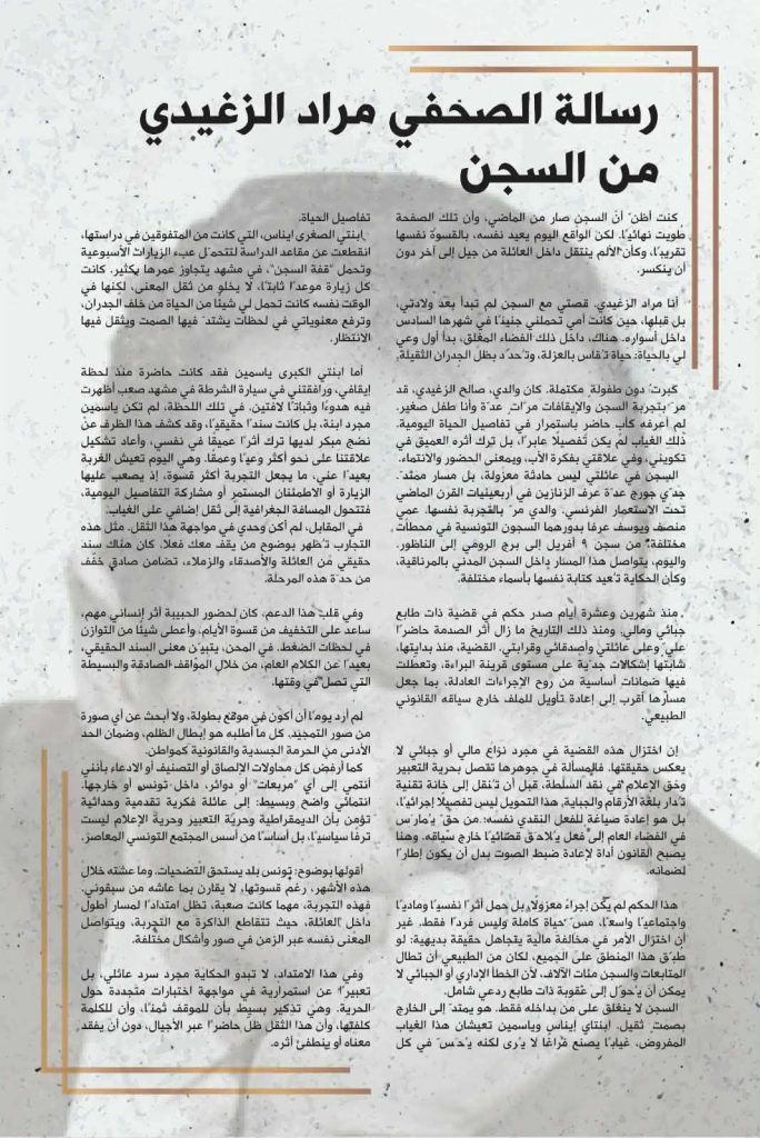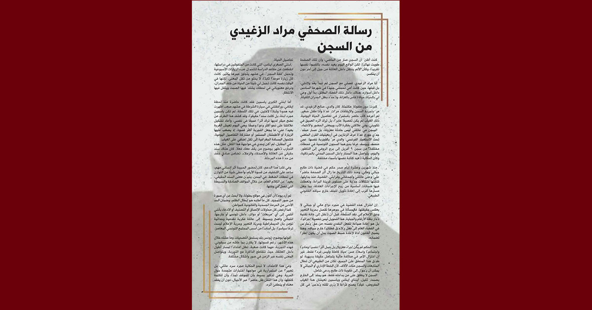 نص “رسالة الصحفي مراد الزغيدي من السجن” وردت علينا قبل أيام من مثوله مجددا يوم 14 افريل الجاري: