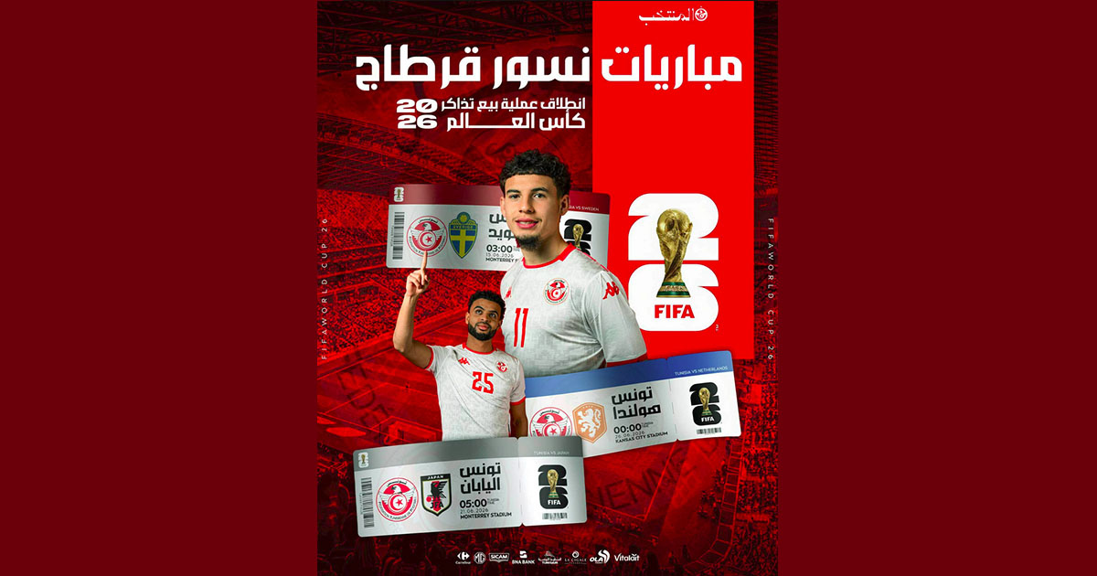 تُعلن الجامعة التونسية لكرة القدم عن فتح باب اقتناء التذاكر الخاصة بمباريات المنتخب الوطني ضمن الدور الأوّل من منافسات كأس العالم 2026.