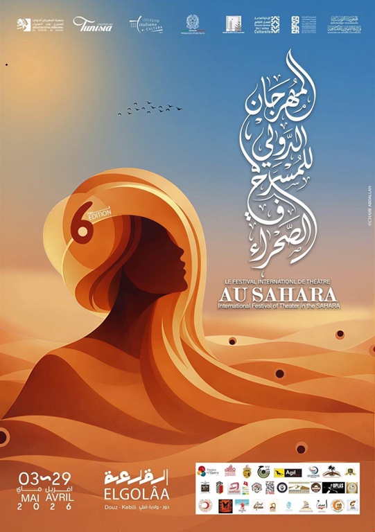 كشفت إدارة المهرجان الدولي للمسرح في الصحراء في دورته السادسة عن معلقته الرسمية لهذه الدورة التي ستدور فعاليتها هذه السنة بمنطقة القلعة من ولاية قبلي من 29 افريل إلى 03 ماي 2026
