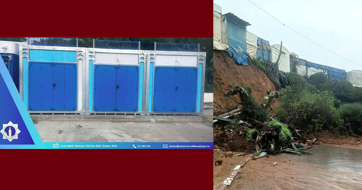 تنفيذا لتعليمات فخامة رئيس الجمهورية السيد قيس سعيد خلال زيارته لقرية سيدي بوسعيد بتاريخ 28 جانفي 2026، والقاضية بإزالة الأكشاك المتضررة من التساقطات الاستثنائية بتاريخ 19 و20 جانفي 2026 الكائنة بمأوى سيدي عزيزي وتعويضها بأكشاك تتلاءم والطابع المعماري للقرية وتحافظ على جماليتها وقابلة لنقلها في وقت لاحق، وبمتابعة يومية من السيد عماد بوخريص والي تونس، شرعت بلدية سيدي بوسعيد في تركيز الأكشاك الجديدة وسيتم خلال الفترة القريبة القادمة استكمال تركيب عدد 11 كشك كمرحلة أولى، في انتظار توفر الاعتمادات واستكمال الإجراءات القانونية لتعويض باقي الأكشاك بالسوق.