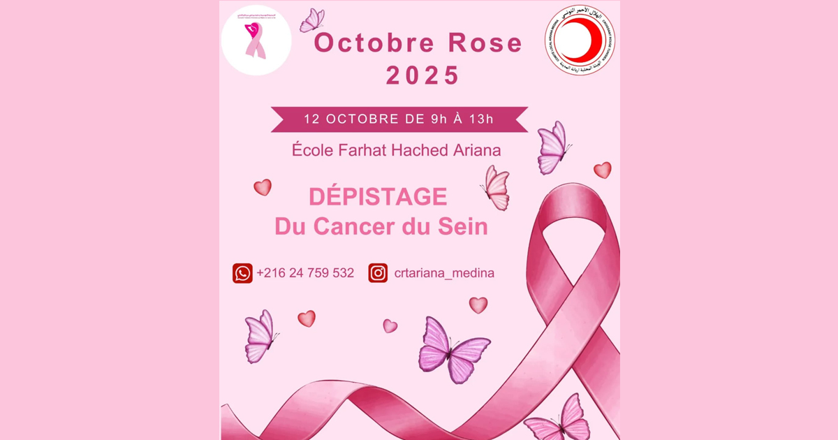 À l’occasion d’Octobre Rose, le Croissant Rouge Tunisien – Comité Local Ariana Médina organise une journée de dépistage gratuit du cancer du sein.