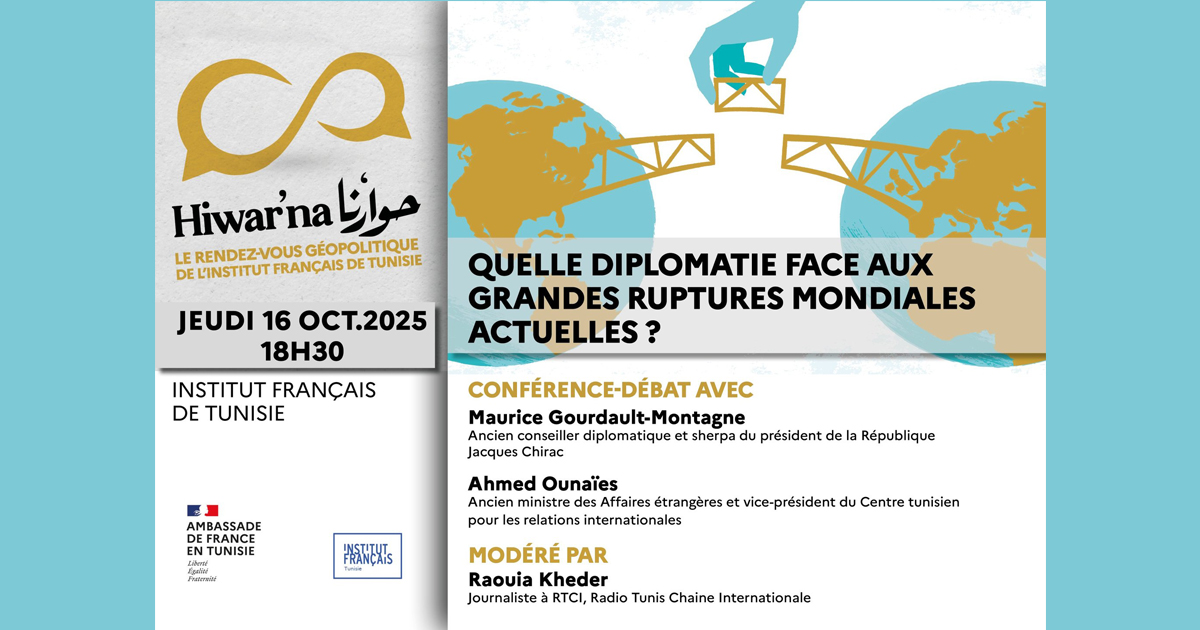 L’Institut français de Tunisie et l’Ambassade de France en Tunisie organisent une conférence-débat, ce jeudi, sous le thème « Quelle diplomatie face aux grandes ruptures mondiales actuelles ? »
