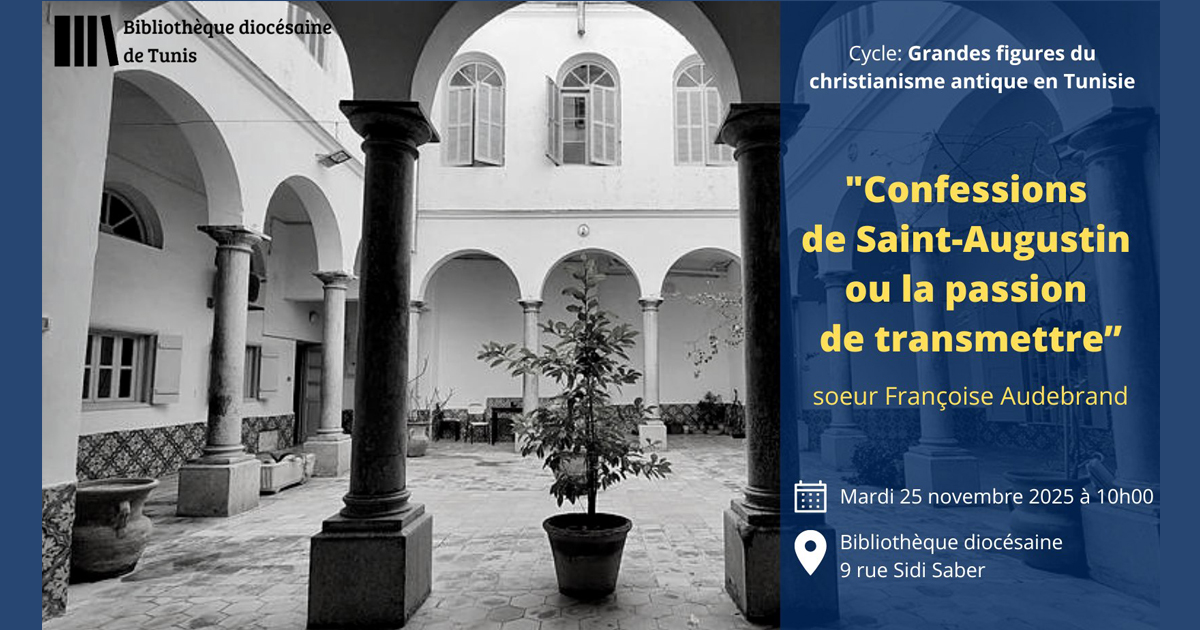 L’évènement organisé dans le cadre du cycle initié en début d’année autour des « Grandes figures du christianisme antique en Tunisie », aura lieu ce mardi 25 novembre 2025 à 10h à Bibliothèque diocésaine (des sciences des religions) au centre de la Médina de Tunis
