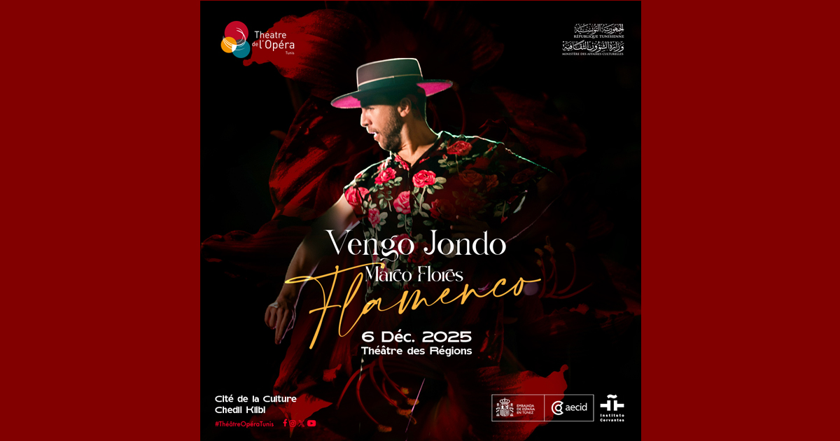 La Cité de la Culture de Tunis accueille le spectacle « Vengo Jondo » de Marco Flores samedi 6 décembre 2025 et invite à une immersion dans le cœur du flamenco vivant.