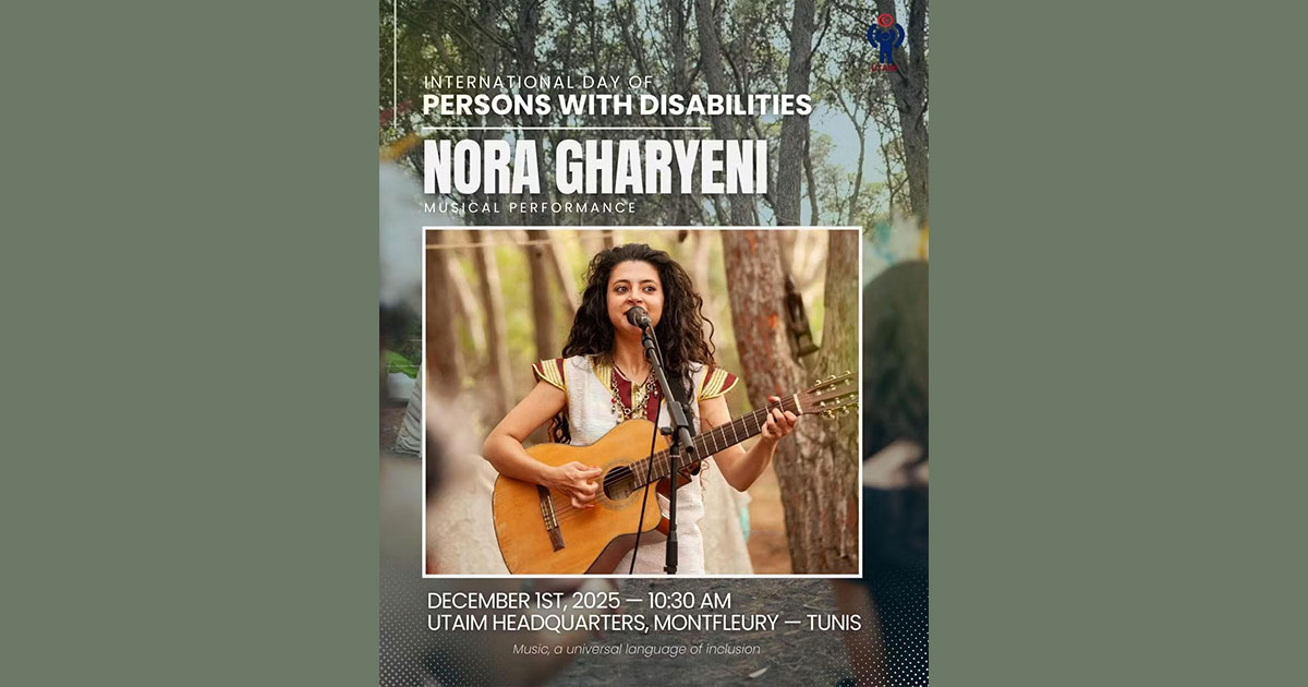 L’artiste Nora Gharyeni participera ce lundi 1er décembre 2025, à 10h30, à l’événement organisé au siège de l’Union tunisienne d’aide aux insuffisants mentaux (Utaim) à Montfleury (Tunis), à l’occasion de la Journée internationale des personnes handicapées.