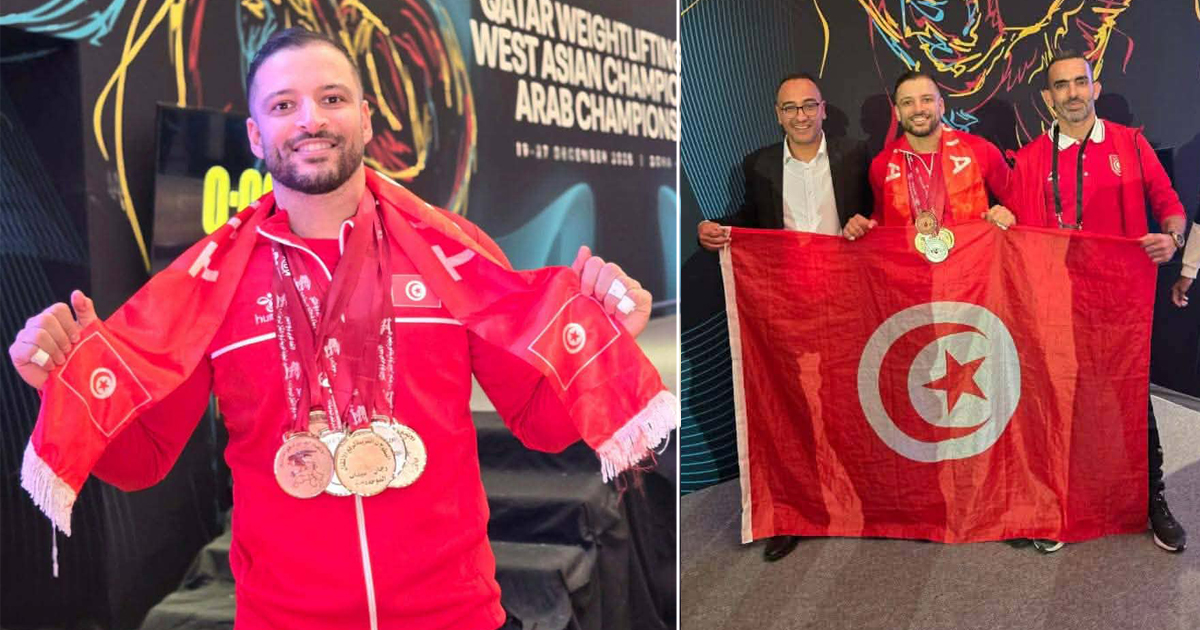 La fédérartion tunisienne d’haltérophilie, qui a félciité le champion tunisien, a précisé qu’il a décroché trois médailles d’or (arraché, épaulé-jeté et total) au Championnat arabe.
