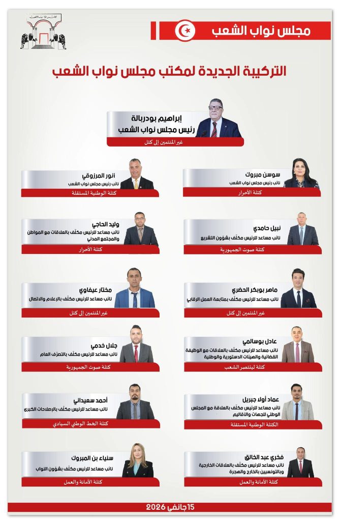 L’Assemblée des représentants du peuple (ARP) a révélé, ce jeudi 15 janvier 2025, la composition de son bureau pour cette nouvelle année.