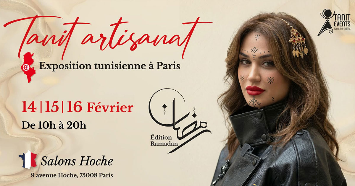 La 17ᵉ édition du salon Tanit Artisanat se tiendra du 14 au 16 février 2026 aux Salons Hoche (9 avenue Hoche, Paris 8ᵉ), offrant aux visiteurs une véritable plongée dans l’artisanat, la culture et les traditions tunisiennes.