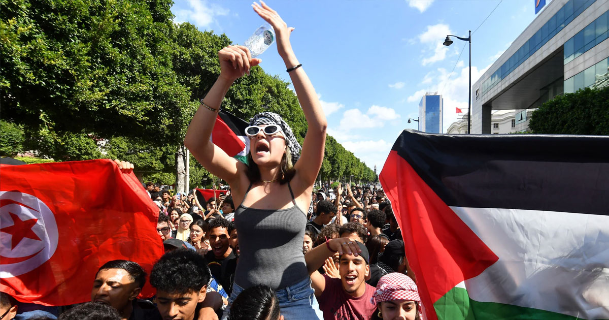 Selon un rapport de l’Institut pour le suivi de la paix et de la tolérance culturelle dans l’éducation scolaire (Impact-se), il y aurait «un fossé important entre les réformes sociales modernes et la persistance d’une rhétorique antisémite» dans les manuels scolaires tunisiens, rapporte le journal Times of Israel. (Ph. Manifestation propalestinienne à Tunis).