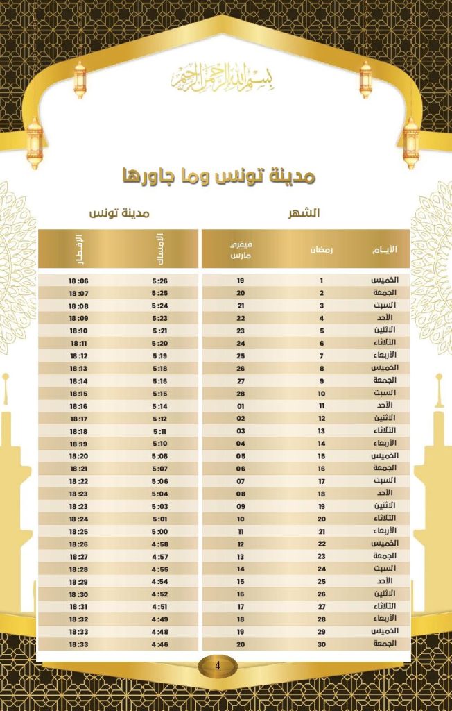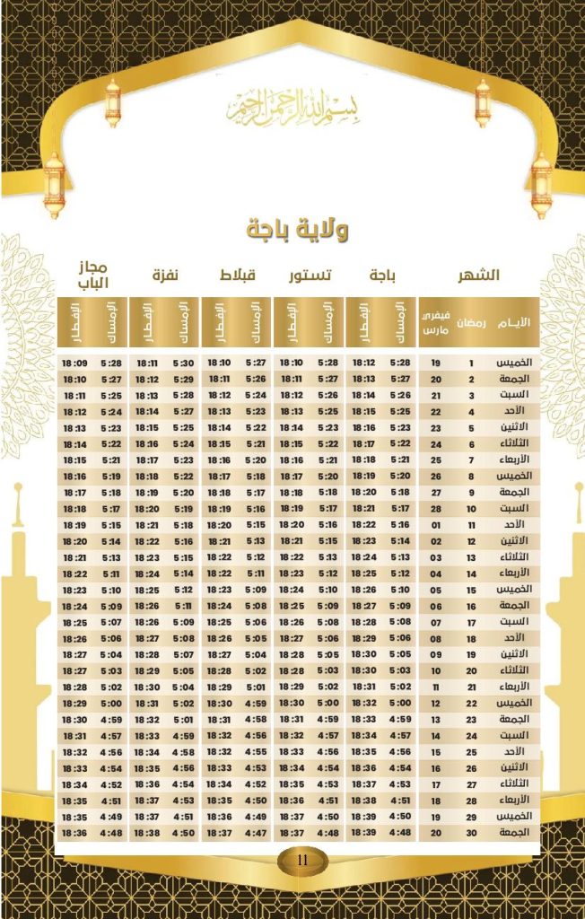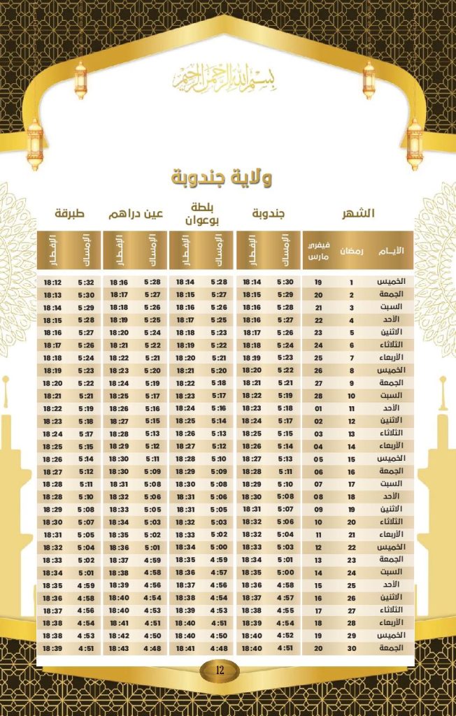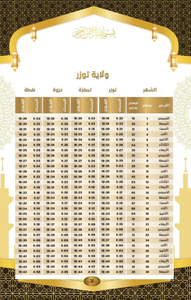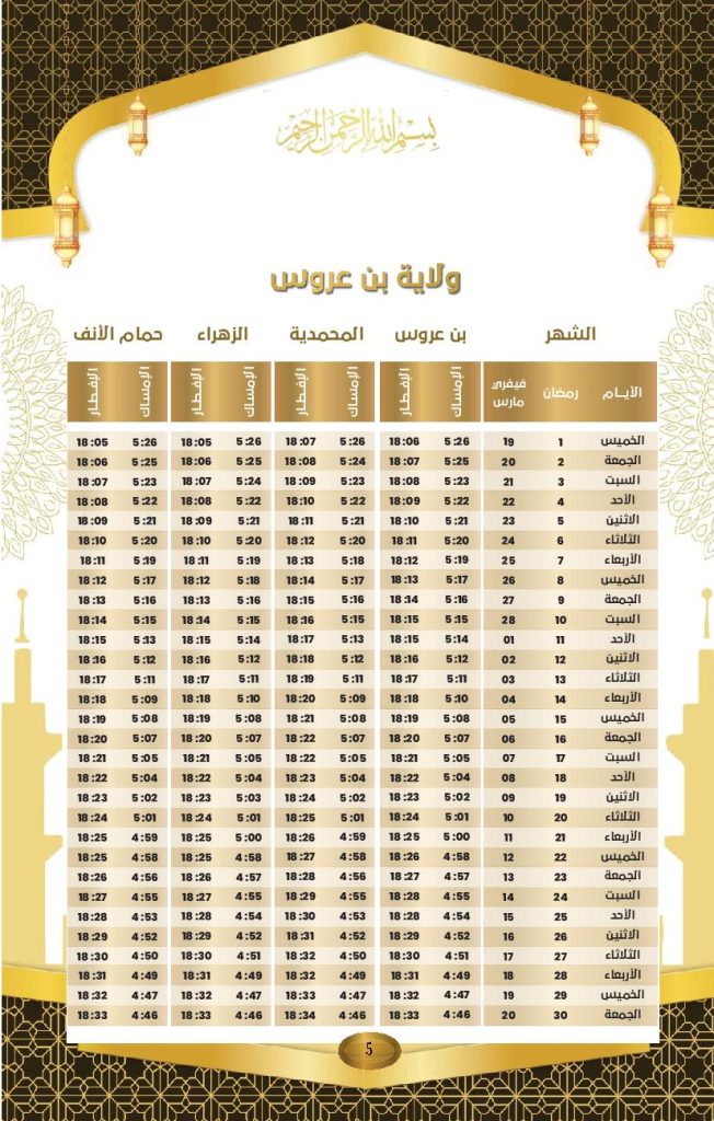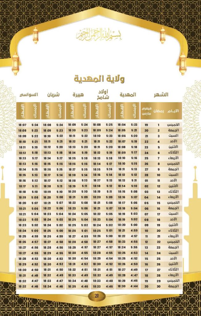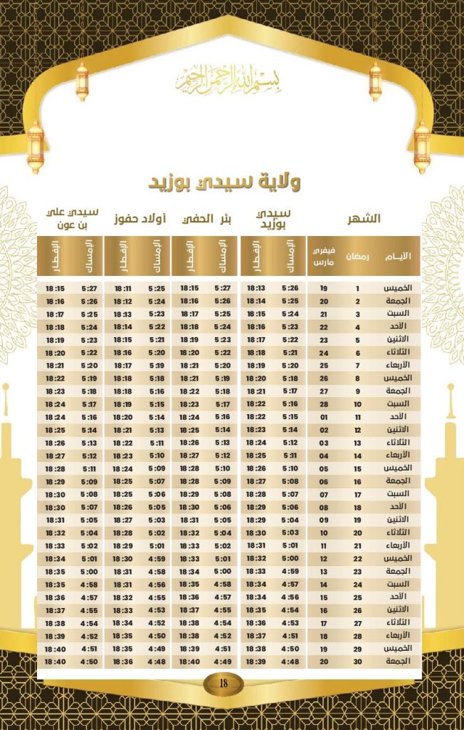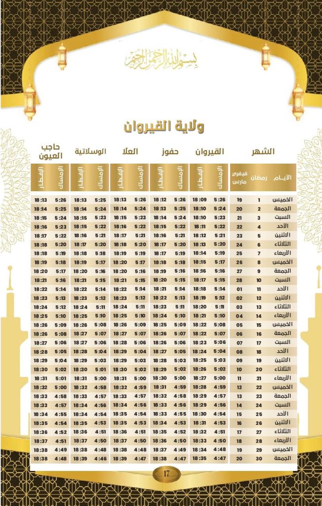 Le ministère des Affaires religieuses a rendu public le calendrier officiel des horaires d’Al-Imsak (début du jeûne) et d’Al-Iftar (rupture du jeûne) pour le mois de Ramadhan 2026, dont le coup d’envoi a été donné jeudi dernier