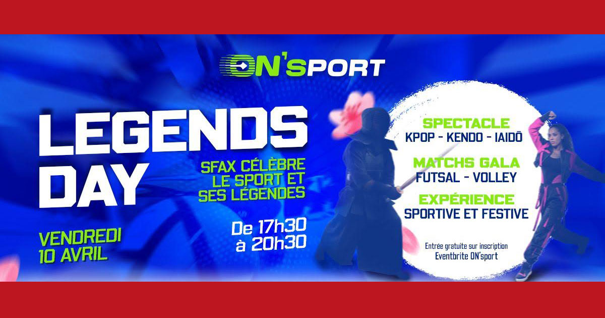 Situé au pôle technologique de Sfax, ON’Sport lance officiellement son complexe omnisport nouvelle génération sur une superficie de 3000m², intérieur et extérieur. Pour marquer l’ouverture de ses portes, le complexe organise un événement intitulé «Legends Day», le vendredi 10 avril de 17h30 à 20h30, à la croisée du spectacle vivant et du sport de haut niveau, conçu pour offrir au public une expérience mémorable.