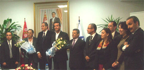 Photo souvenir M. Fadhel au milieu de ses hôtes Chatta et Ben Mlouka