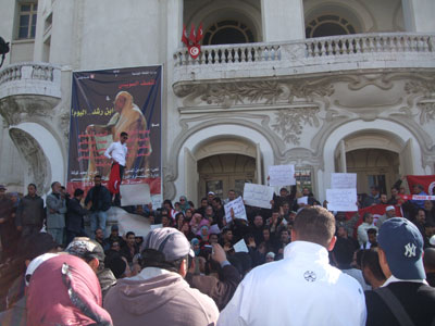 A l’heure indiquée, sous un beau soleil printanier, il y a eu du monde à l’avenue. Simplement du monde, ni plus ni moins. A gauche comme à droite, les cafés bondés. Autour des tables, sous les parasols, on se paye après le déjeuner, un petit café, un thé à la menthe, un soda et même une ou deux boules de glace avant de reprendre le travail. Un petit moment de repos tout en scrutant du regard les promeneur(e)s passer et repasser. Les uns se baladant avec des sacs remplis d’articles soldés (en 2ème démarque), d’autres se trimbalant les mains vides, et d’autres avec leurs banderoles et affiches qui protestent... Le spectacle est devenu presque banal. Car, les manifestations à Tunis sont devenues, depuis un an, le pain quotidien des Tunisiens, et ne surprennent plus personne. Sauf lorsqu’il y a des milliers de manifestants et des accrochages, là, ça interpelle.
