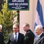 Le maire de Paris Bertrand Delanoë a inauguré, jeudi 15 avril, sur le quai Branly à Paris, l’esplanade David Ben Gourion, en présence du président israélien Shimon Peres, et de Rachida Dati, la maire du VIIe arrondissement, et de nombreux autres élus. Malgré un important dispositif policier, des militants pro-palestiniens ont pu manifester à quelques centaines de mètres de là.