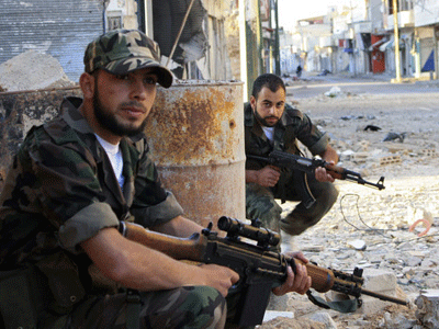 Des combattants de l'Armée de la Syrie libre à Qusair près de Homs.
